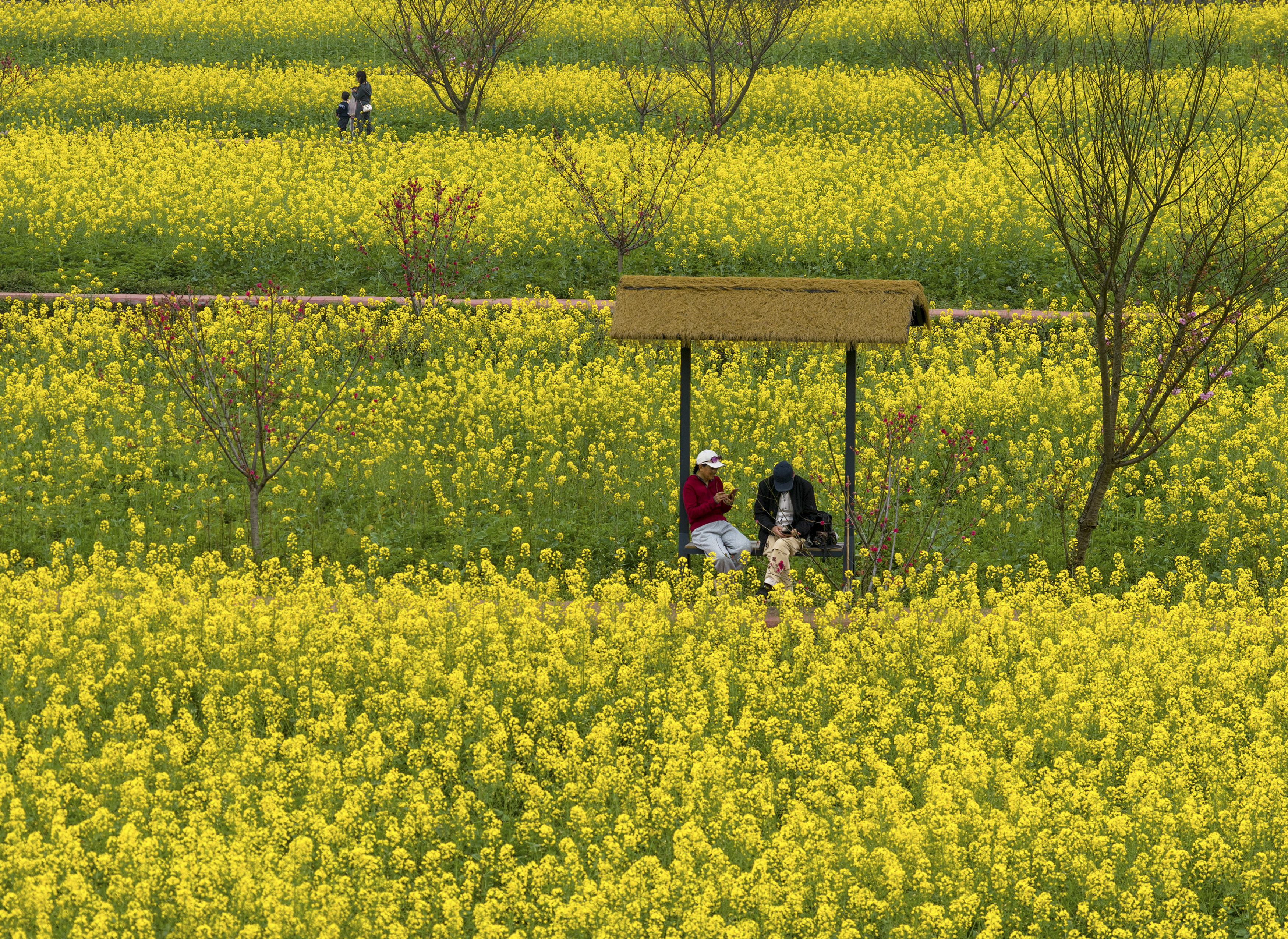 3月22日,游东说念主在重庆市北碚区天府镇代家村踏青赏花(无东说念主机相片)。