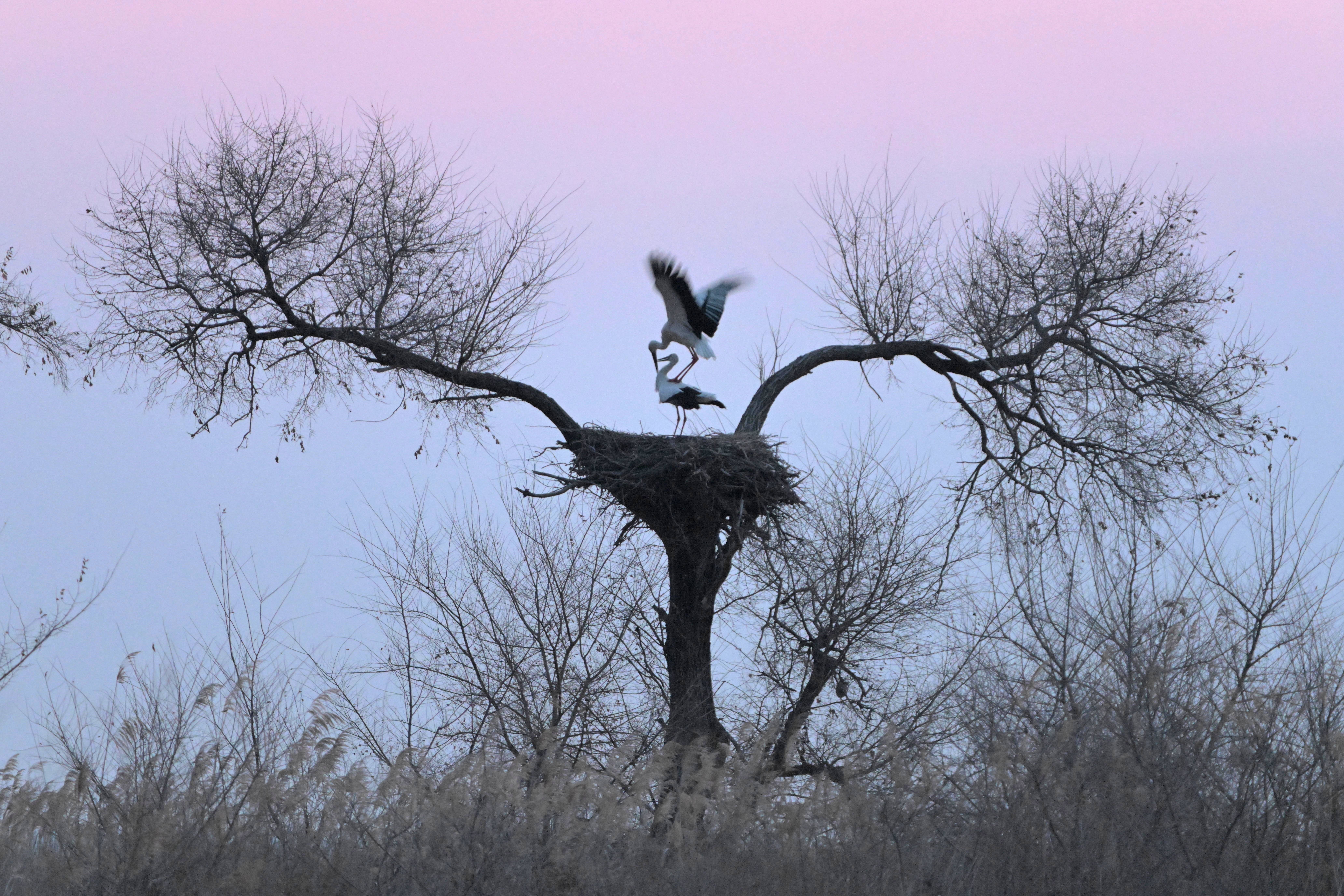 这是3月22日在黑龙江省皆皆哈尔市克钦湖湿地拍摄的东方白鹳。