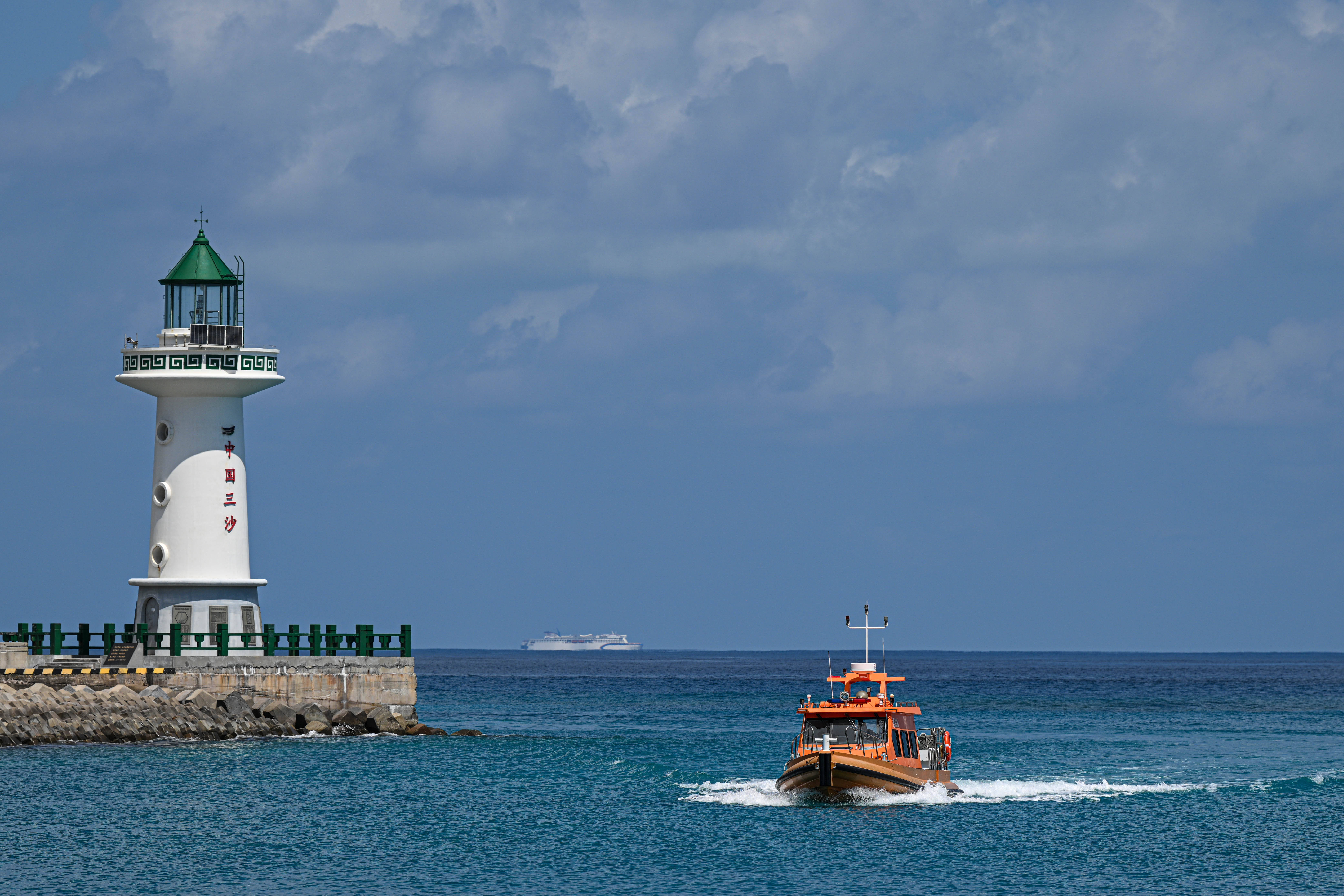 3月19日在海南三沙拍摄的往返于永兴岛与赵述岛的海上交通保险船。往返于海南三沙永兴岛与赵述岛的海上交通保险船于2025年1月7日细致开航。