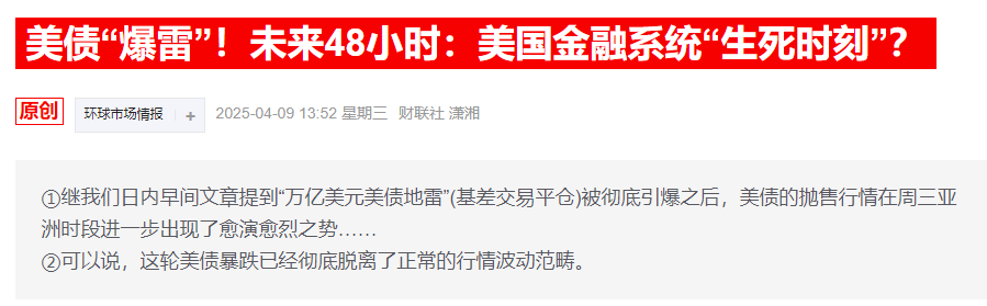 不外,关于好意思债波动与暂缓关税间是否存在规划,好意思国财长贝森特在昨夜则赐与了否定。贝森特今日也在白宫被记者问到——好意思债收益率的惊东说念主高涨激发了东说念主们对流动性危机的担忧,以及对好意思国国债是否正在失去其避险地位的质疑,这是否促使特朗普作念出了部分靡烂?