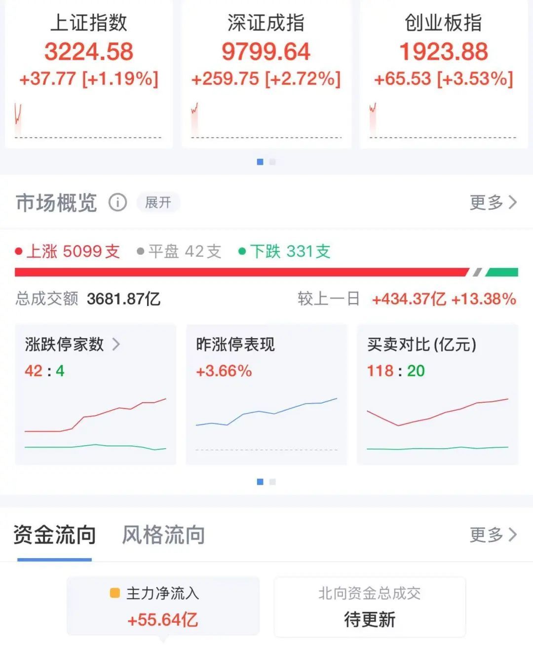 4月10日,A股开盘全线飘红,三大指数皆涨。限度发稿,沪指涨超1%欧洲杯体育,深成指数涨超2%,创业板指涨超3%。全市超5000股高潮,消耗电子、算力等板块指数涨幅居前。