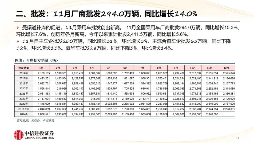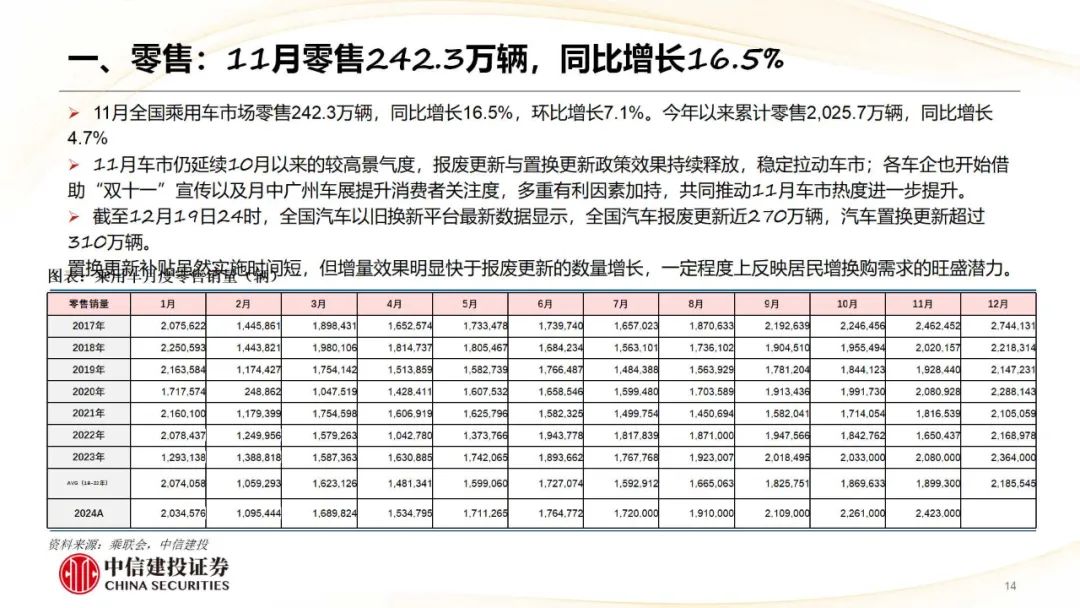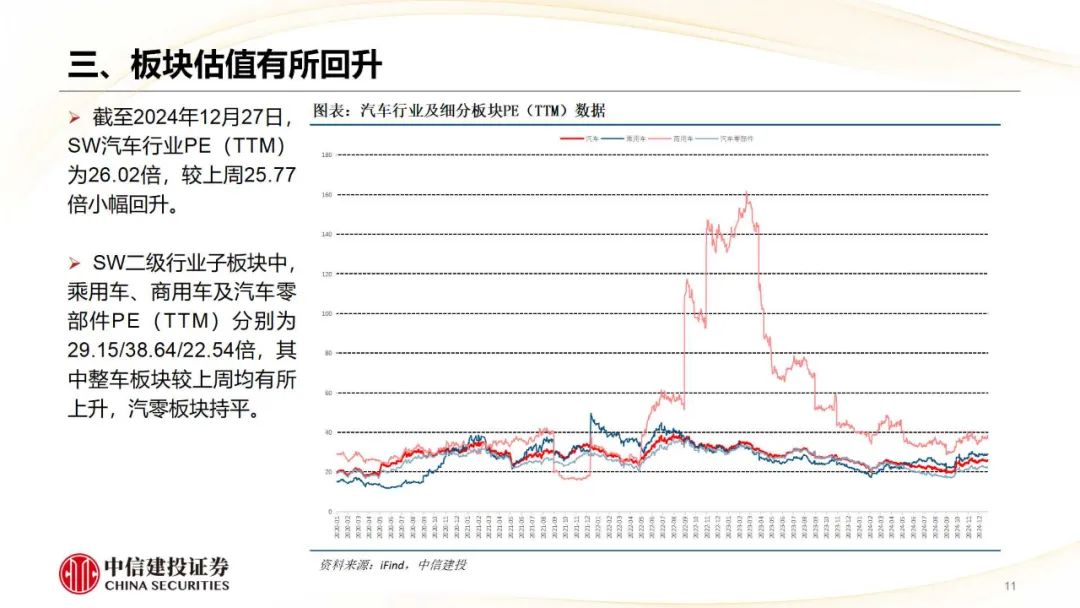 乘用车:12月23日,本田和日产签署包涵备忘录,认真运转磨灭谈判,后续六个月内将接头磨灭为一家控股公司,预测将于2025年6月签署最终条约,2026年8月完成磨灭。磨灭后的新控股公司将成为群众销量第三大汽车制造商。12月25日-27日,设想汽车联结三天推出“2024设想 AI Talk”,共享了对AI的最新念念考以及智能驾驶、设想同学等AI时间的最新发达,并通知基于自研基座大模子Mind GPT的设想同学从车机进动手机,及OTA 7.0版块车机系统将于12月底推送AD Max用户等现实。现一样点下,看好定位主流市集(补贴弹性大)、新动力占比高(补贴金额高)、华为系干线。