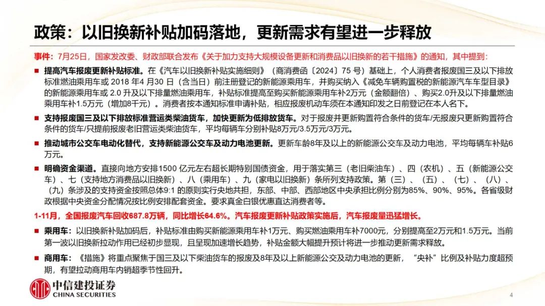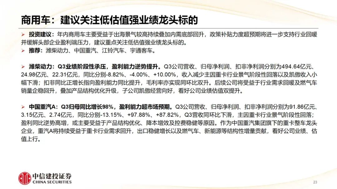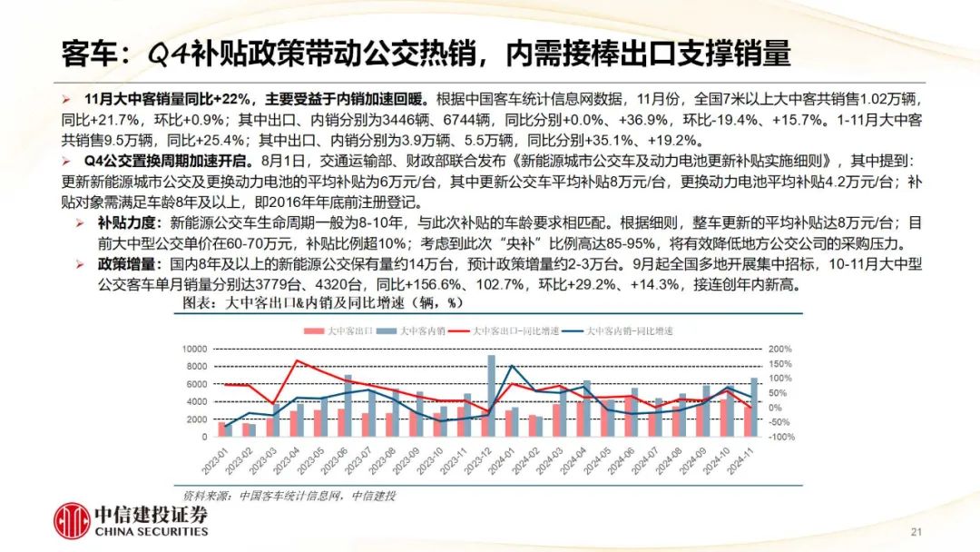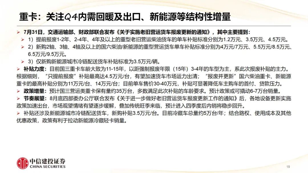 商用车:出海景气不时类似内需底部回升,补贴确定落地将扶助行业回暖并缓解龙头盈利端压力。