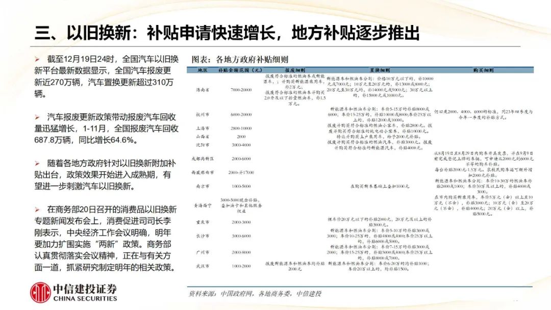 2、计谋落地末端不足预期。破钞品以旧换新以及莳植更新计谋全面落地仍需时日,计谋宣传、信息传播亦需要一定时分。四季度补贴资金能否不时披发到位,置换需求能否班师开释,均有待不时不雅察。