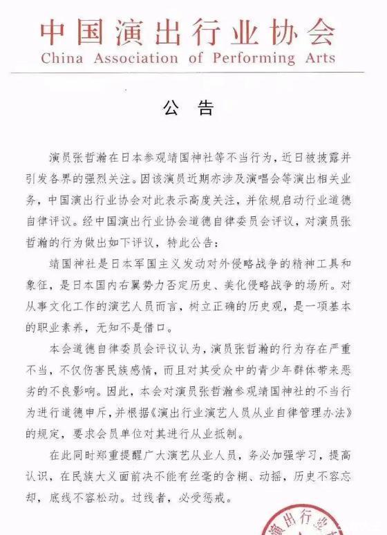 身为公世东说念主物的张哲瀚,涓滴不顾及我方的身份赶赴靖国神社。