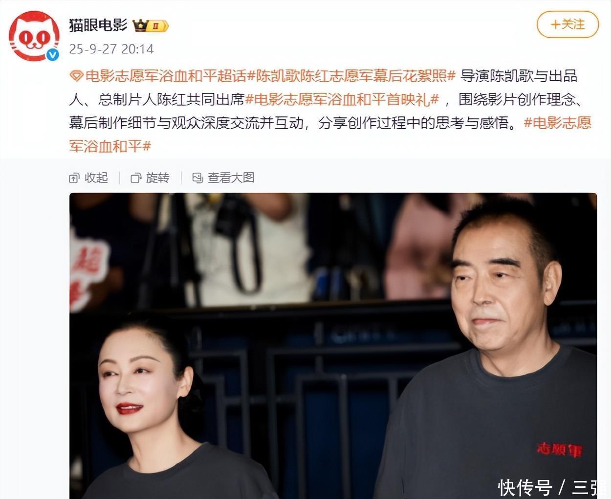 前几日,陈凯歌跟陈红带着述品《志愿军浴血和平》出席首映礼。