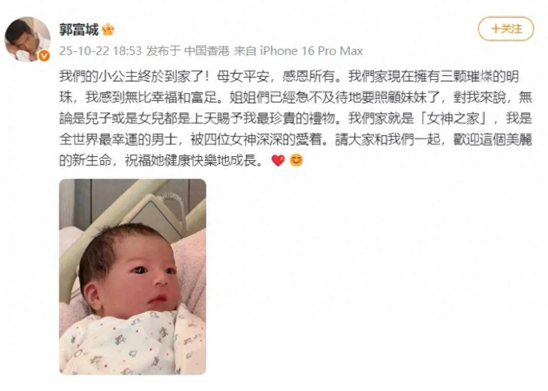 恭喜郭富城再添贴心小棉袄,虽未如他期待得子,但女儿相同好意思好。正如他所言,他家是“女神之家”开云体育(中国)官方网站,他确乎是个运道之东谈主。