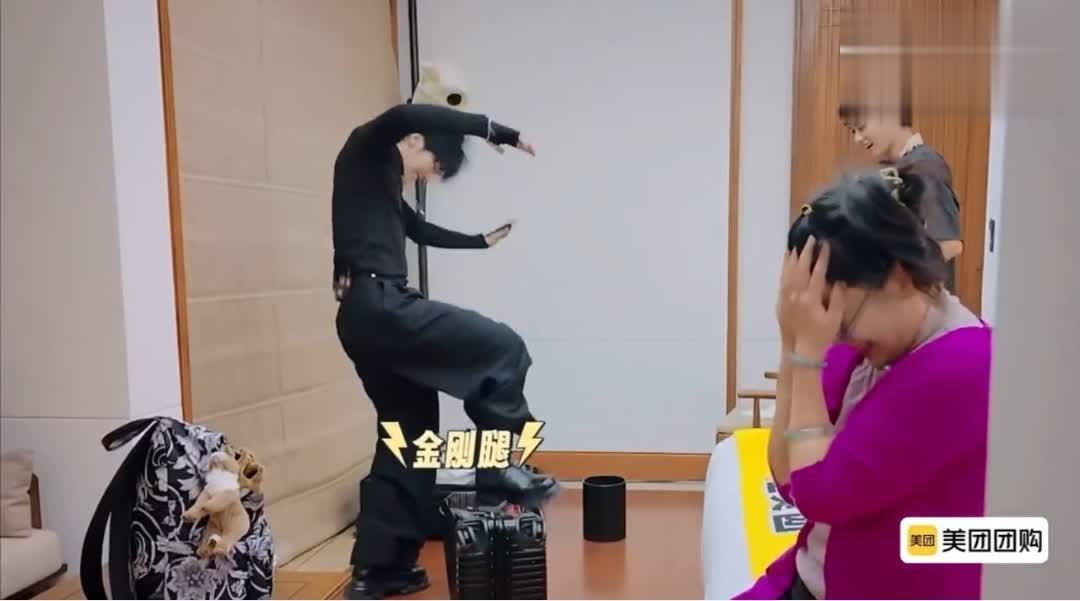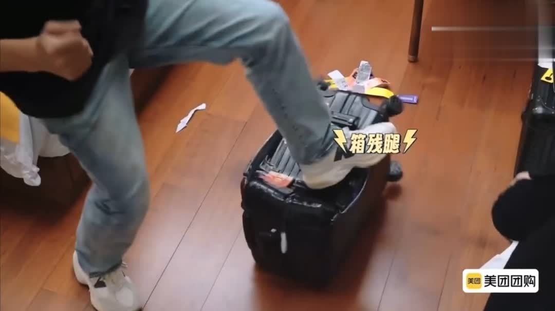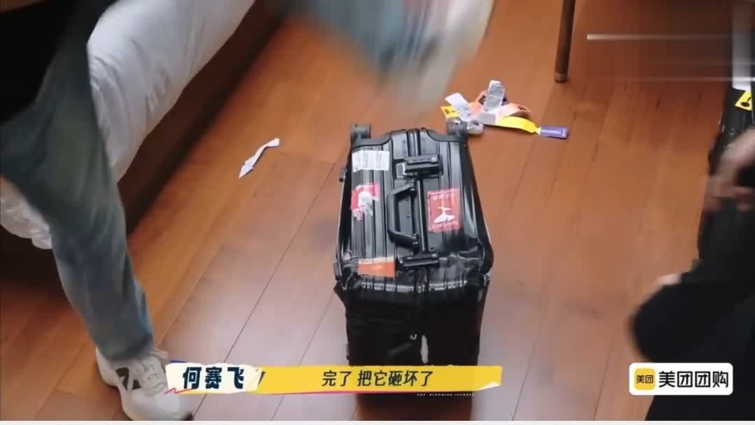 节目中,何赛飞的行李箱卡住打不开,邵子恒和柯淳两个弟弟来襄理。效用邵子恒一浮躁,后退三步助跑,飞起便是一脚,箱子眨眼间被踹得零件乱飞!
