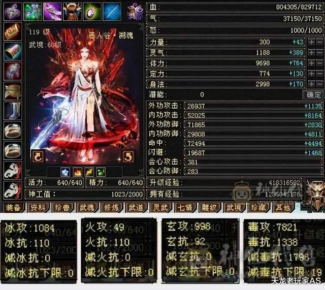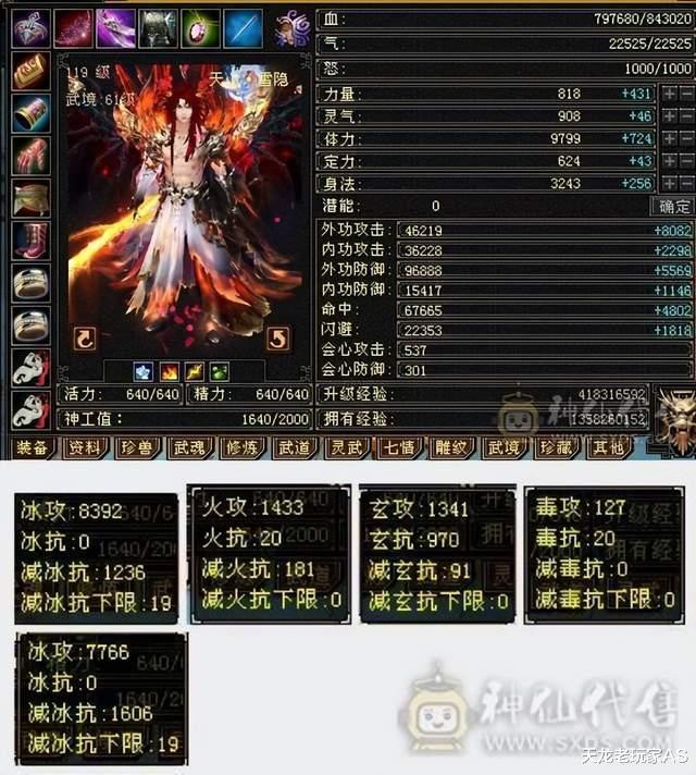 售价75万的顶级天山面板:血量84万,冰谬误8392,还有一套减抗装备,减冰抗最高达到1606!