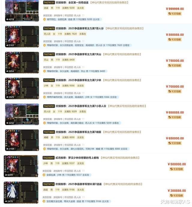 2025年争霸赛黑马【恶东谈主谷】就业器的正義战队以550万的价钱打包出售沿途账号: