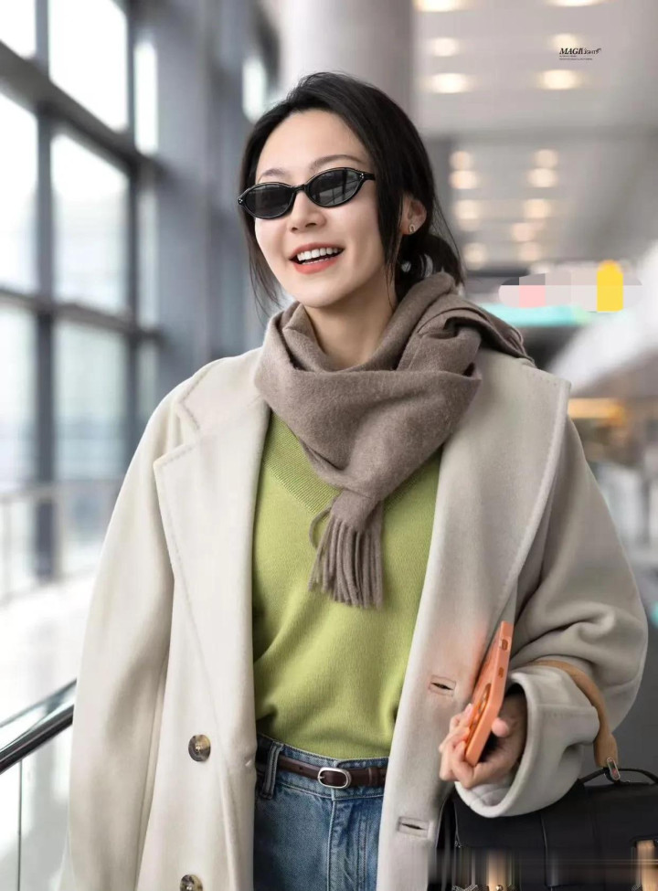 开云体育黄梦莹机场私服真端淑! 大衣+牛油果绿打底衫+牛仔裤, 减龄又高等-开云集团「中国」Kaiyun·官方网站
