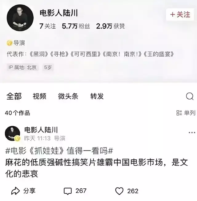 这十分于在责问电影水准的同期,也抵赖了影迷们的审好意思。那时就有许多东谈主以为陆川有些高慢跋扈,简称“飘了”。然后在《749局》票房成绩不达预期的情况下就有“陆川 《捏娃娃》”的关连热搜了。因为《749局》的首映口碑径直坏掉,压根不存在后续翻身的可能性,是以就有好多网友吐槽:陆川还评价《捏娃娃》是低质强碱性笑剧片,效果我方煞费神机创作的电影票房连东谈主家零头皆不到。