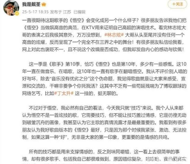 早在2015年的好歌曲现场,戴荃就曾用《悟空》一曲惊艳众东谈主杀出比赛。 并且就在本年的歌手舞台上,林志炫曾经因翻唱这首歌一时辰登上了各大平台的热搜。 可即是这样被大师悉数东谈主都认同的好歌曲,到了丁太升嘴里却成了“太烂,没本事含量”。