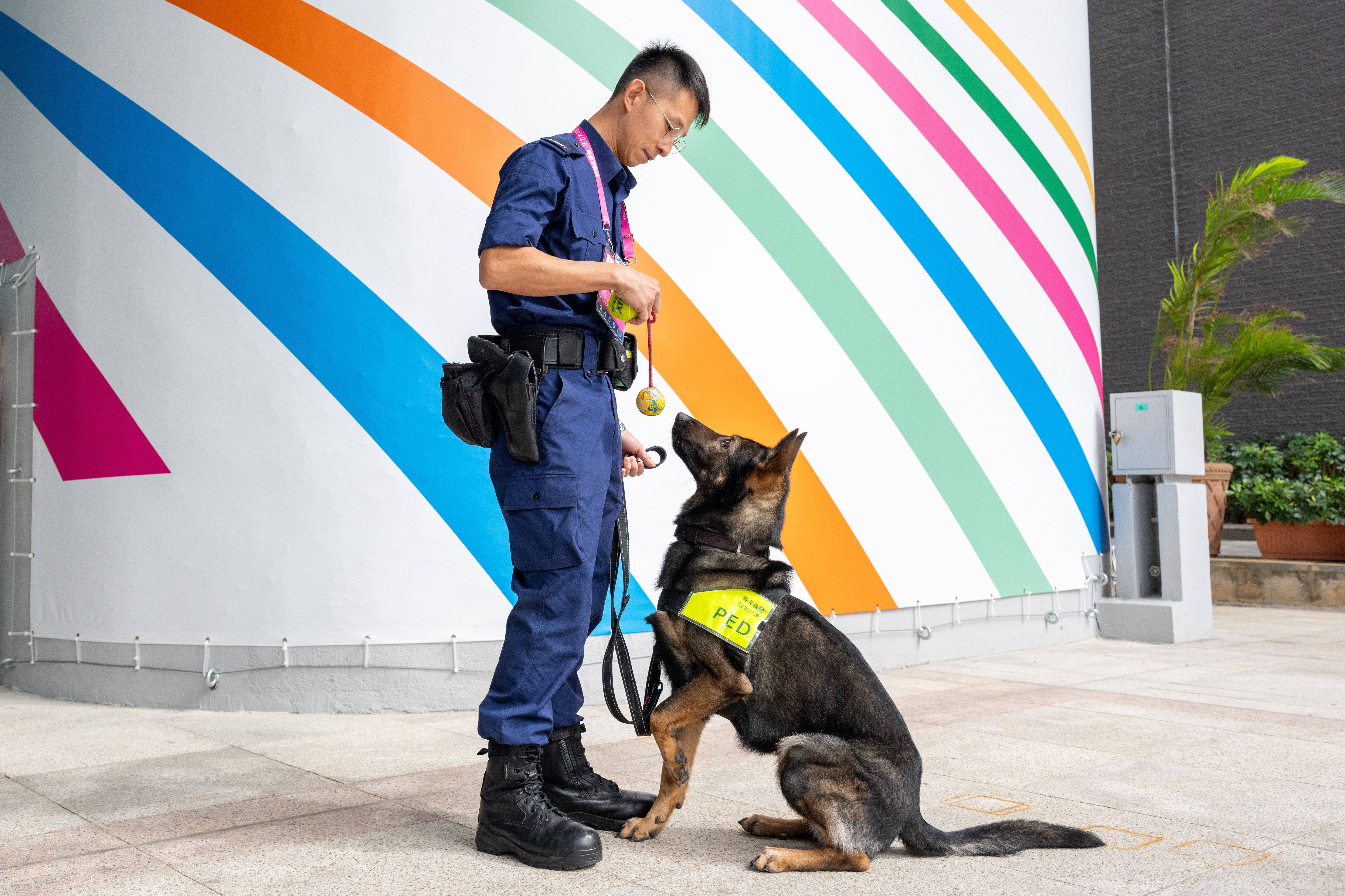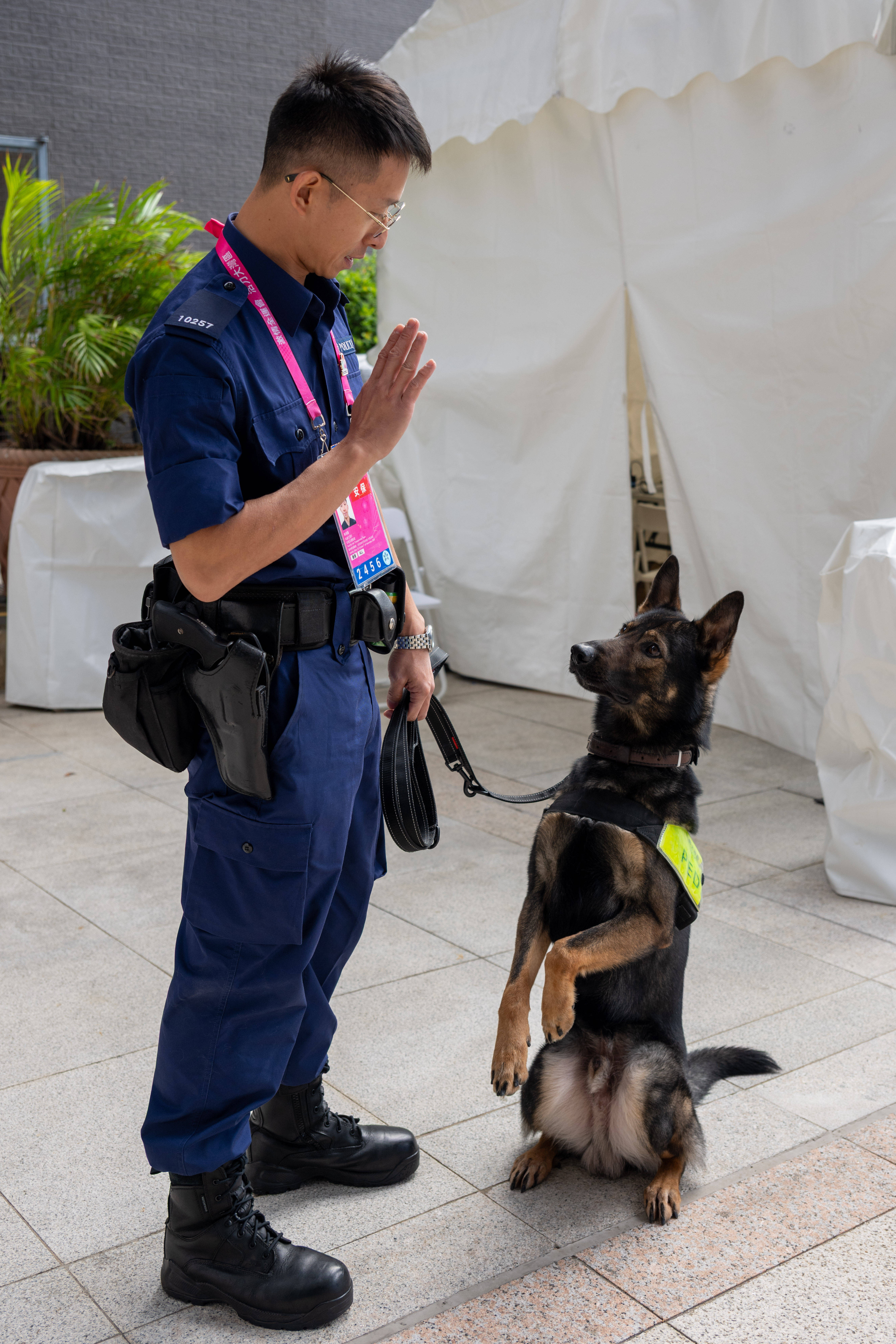 “它刚从学校‘毕业’不久,还在学习,但它杰出厚爱。”它的主东说念主林沛谦,是十五运会香港赛区执行搜爆安保责任的香港警务东说念主员。听到主东说念主的夸奖,Rich仰开头,耳朵竖得直接,似乎听懂了些什么。