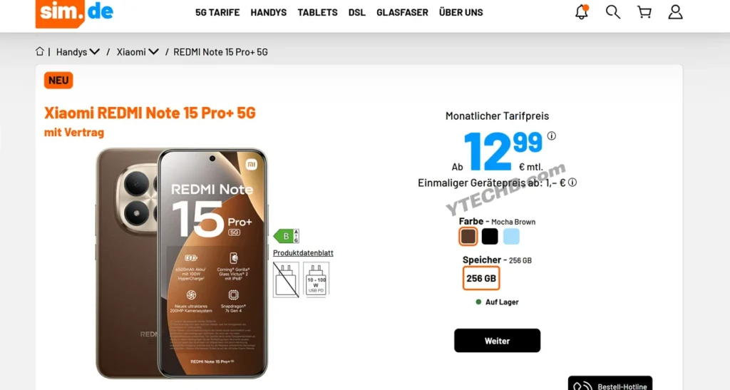 REDMI Note15 Pro+ 5G (8GB / 256GB):499欧元