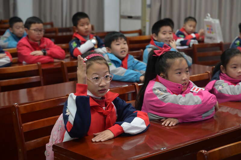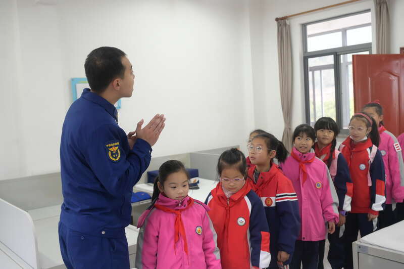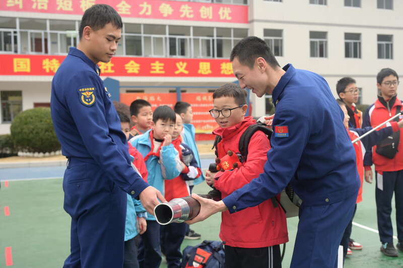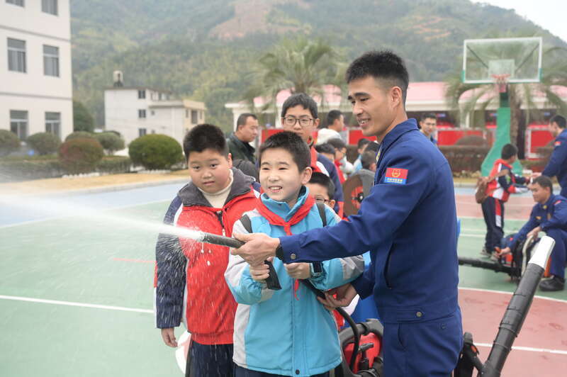 1月31日,福建南平,延平消防救援无邪中队,学生与消防员积极互动。杨鸿磊/摄