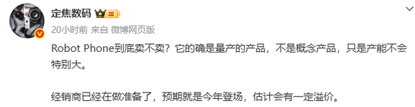 【CNMO科技音讯】近日,数码博主@定焦数码爆料称,荣耀首款机器东说念主手机Robot Phone诚然已是量产居品而非想法品,但产能不会相配大。经销商已启动准备卖货,这款手机展望本年登场,且可能存在一定溢价。