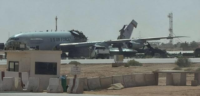 此前我们凭证卫星图的分析,得出论断:好意思军3架KC-135加油机被毁,4架KC-135受损,还有2架EC-130H也被触及受损。7架大型飞机损毁,不错说短长常严重的事态了。可是凭证开源谍报分析师对Landsat 8/9卫星图像的进一步分析发现,战果还不啻这样多,前边的统计漏掉了最大的鱼——至少一架E-3G预警机,在这次进犯中透顶被毁。动身点看到这位的分析我还不太信,可是很快啊,沙特网友拍的像片就传到网上了,这现象,如实是透顶报废了。