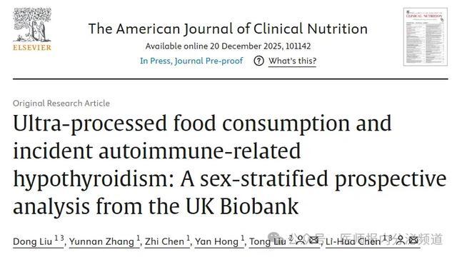 超加工食物可能通过代谢特地、肾功能损害和慢性炎症通路等,促进自己免疫性甲状腺疾病的发生。