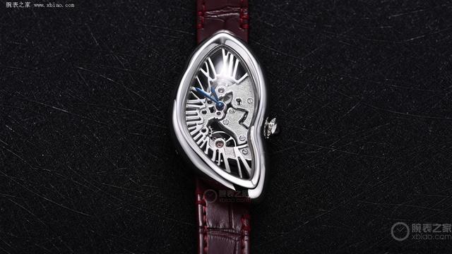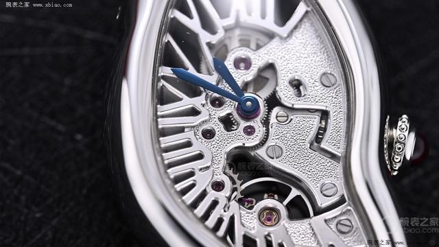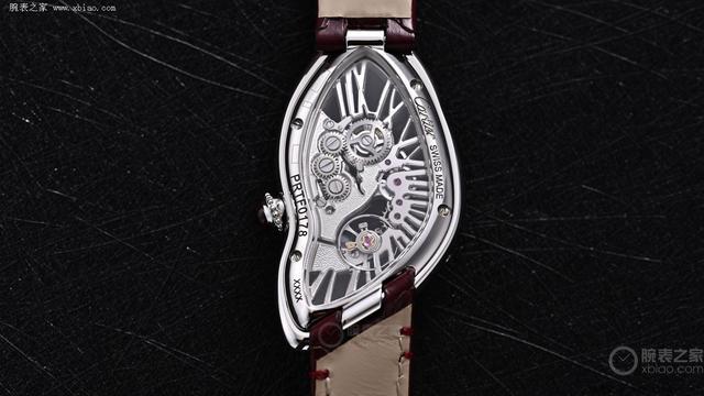 拿起这款手表,除了它特有的外形以外最值得一提的即是它特有的机芯蓄意。卡地亚误解变形的蓄意不再局限于表壳,而是延长到整枚机芯。咱们通过透明表背不错抚玩到机芯齿轮的精妙运转。其经由“撞击”后的结构与造型和误解的表壳如胶似漆。