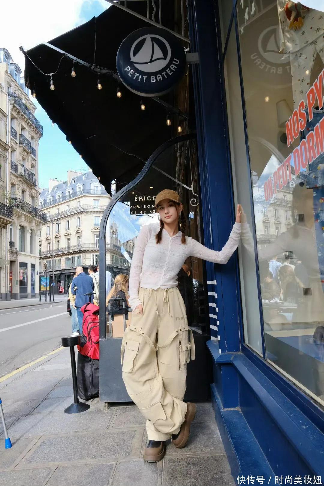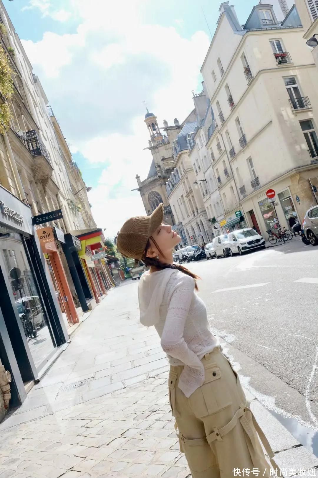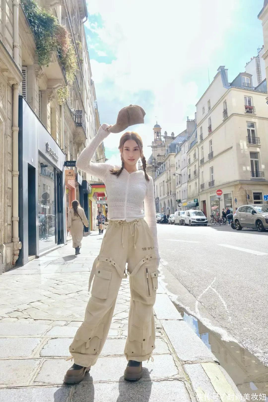 “甜好意思+帅气”,混搭出个性: 白色镂空真挚衫自带甜好意思气味,而杏色工装裤则增添了几分帅气感,两者混搭在扫数,碰撞出特有的前锋火花。“细节+配饰”,擢升举座抽象度:麻花辫发型甜好意思可人,与真挚衫的慈详气质相呼应。棒球帽的加入则为举座造型增添了几分俏皮感,更显芳华活力。